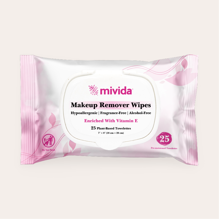 mivida Hypoallergenic Makeup Remover Wipes with Vitamin E, (25 Count)